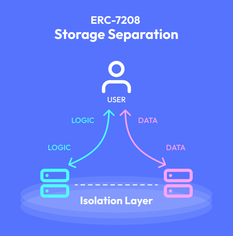 - ERC-7208 decouples storage (Data Objects) from business logic (Data Managers), so multiple interfaces can operate on the same underlying data at the same time.